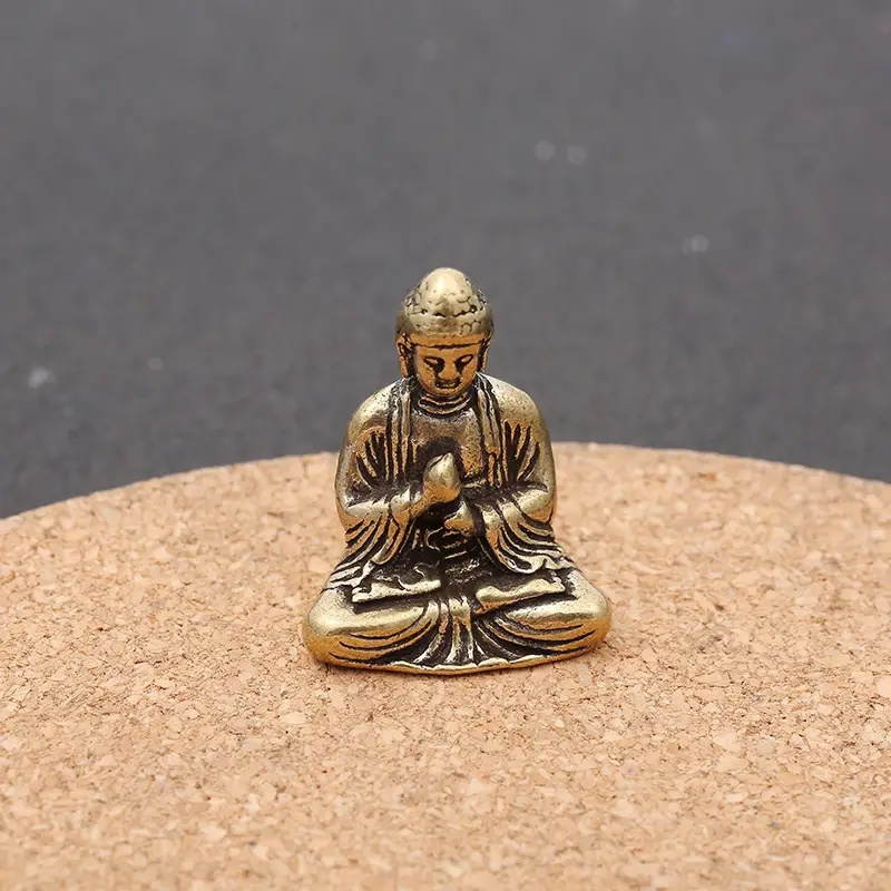 1pc Brass Smiling Buddha Statue - Tathagata Monk Figurine, Metal Craft Religious Decor for Home & Office